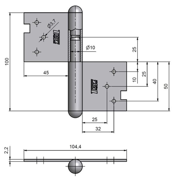 Įleidžiamasis durų lankstas C2 100 100 mm, dešinysis