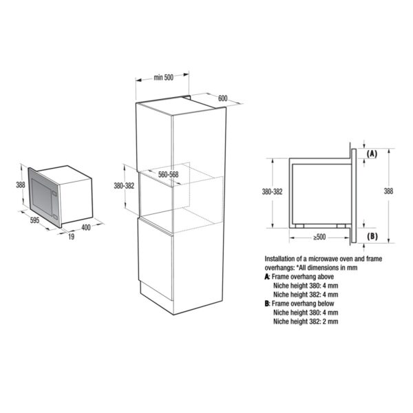 - Mažiausias montavimo nišos aukštis: 380 mm