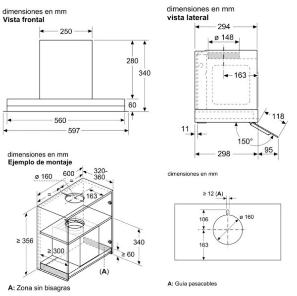 - Appliance height exhaust air min 340 mm
