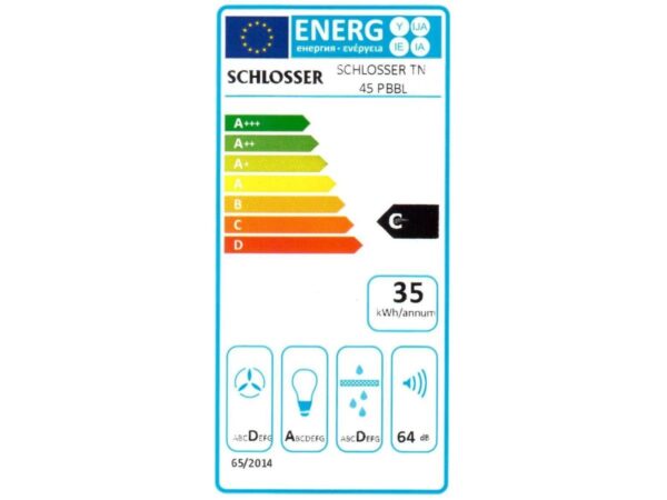 - Ištraukimo galingumas: EU 65/2014 direktyvą: min 195 m³/h-max 305 m³/h