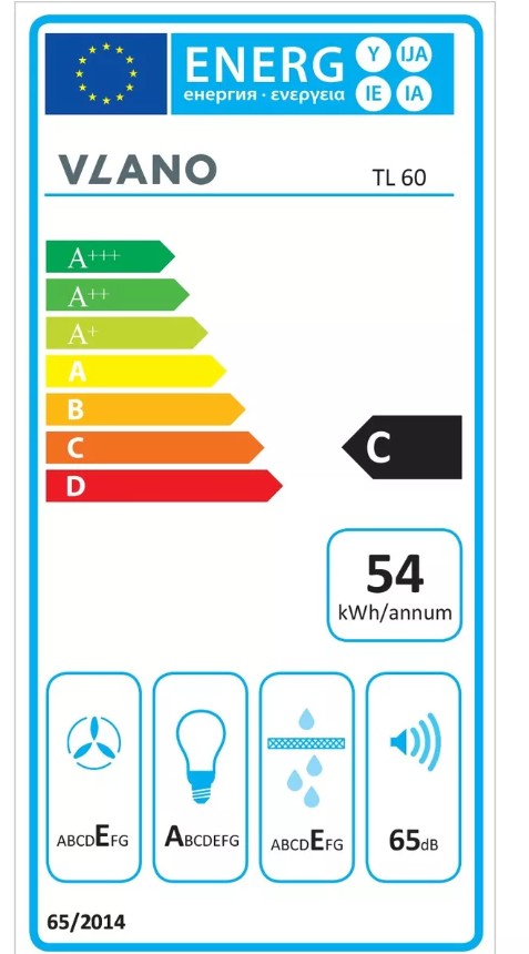 - Riebalų filtravimo efektyvumo klasė: E