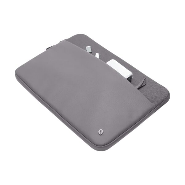 The exterior zippered pocket is a practical solution that keeps essential accessories such as a charger, portable hard drive, adapters and hub within reach.