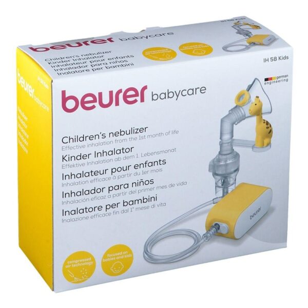 Prekės ženklas- Beurer. Modelis- IH 58 Kids. Ilgis- 110 mm. Plotis- 47 mm. Aukštis- 42 mm. Svoris- 0.176 kg. Talpa- 0.006 l. Spalva- Balta, Geltona. Inhaliatoriaus tipas- Kompresorinis. Pralaidumas- 0.25 l/min. Triukšmo lygis- 45 dB. Maitinimo šaltinis- Elektros tinklas. Komplekte- Inhaliatorius, laikymo krepšys. . Privaloma garantija- 24 mėn. Garantija juridiniams asmenims- 12 mėn.