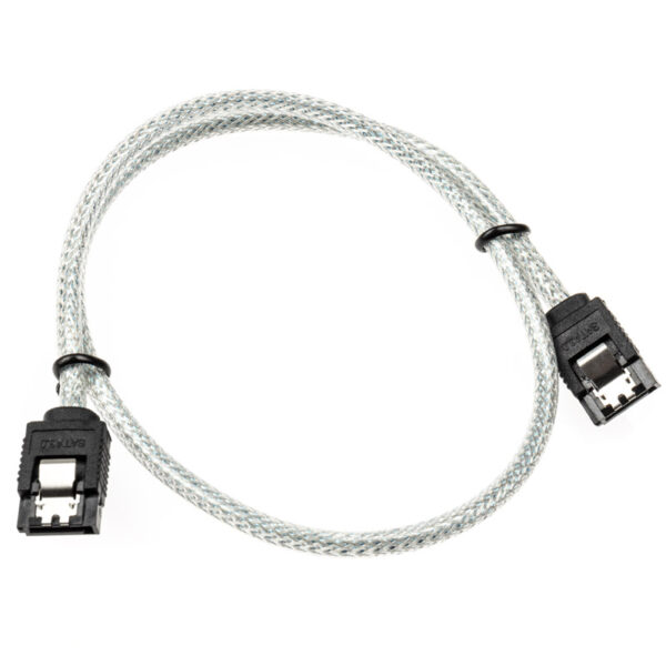 50 cm long, transparent SATA 6G cable from InLine – round, with 2 straight connectors (locking latch)