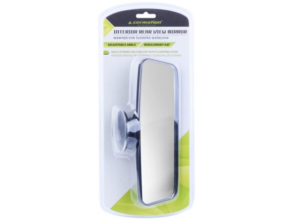 Universal interior mirror mounted on a suction cup with a self-locking lever. It is intended for use by driving instructors, parents. Dimensions: 61 x 184 mm. Note. After mounting and dismounting several times, the suction cup may lose its adhesive properties. In this case, wash it in warm water.