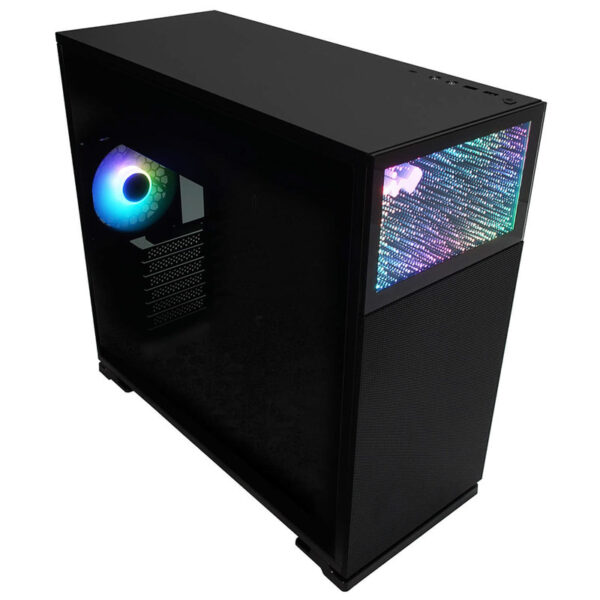- Tinted tempered glass side panel and mesh front