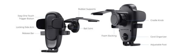 With the Easy One Touch, you can mount or release your phone in seconds. Simply press the side release bars and then press your phone against the trigger button; the mount’s arms will automatically close, securing your phone firmly.