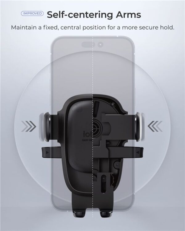 The enhanced stabilizing cradle keeps your phone securely in place, even on bumpy roads. The self-aligning arms ensure that your phone stays in the correct position.