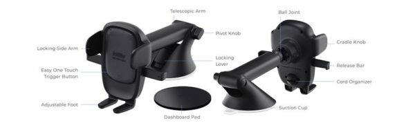 With the Easy One Touch, you can mount or release your phone in seconds. Simply press the side release bars and then press your phone against the trigger button, the mount’s arms will automatically close, securing your phone firmly.