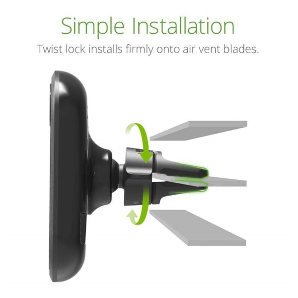 - twist lock securely tightens onto most vehicle air vents for quick and easy installation