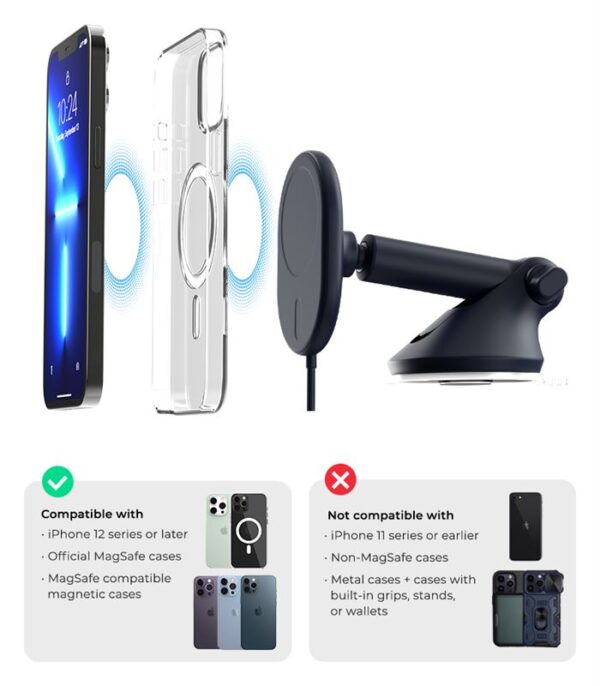 - A sleek and powerful fast charging mount for MagSafe compatible iPhones