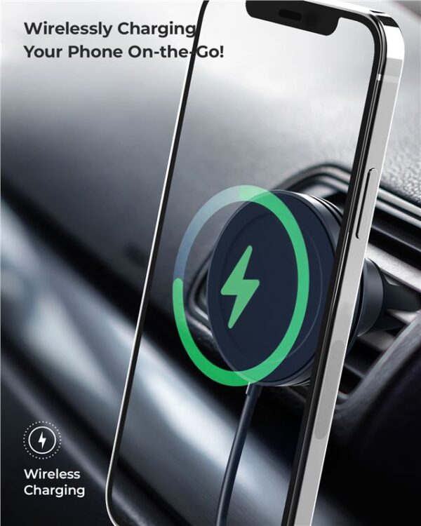 Strong magnets hold your MagSafe iPhone in place while you drive, even on rough roads.