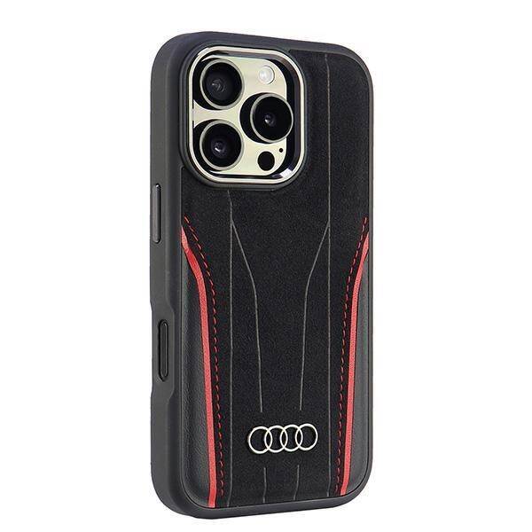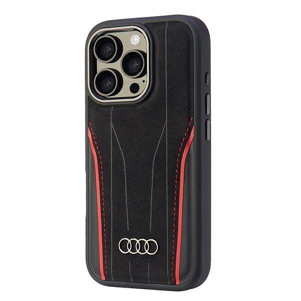 Apple iPhone 16 Pro Audi Genuine Leather MagSafe (AU-TPUPCMIP16P-R8/D3-RD) dėklas telefonui juodos ir raudonos spalvos