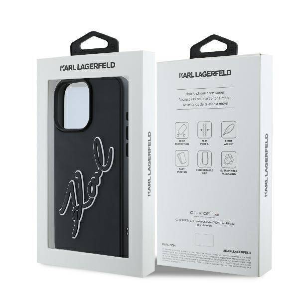 Apple iPhone 16 Pro Karl Lagerfeld 3D Rubber Bicolor Signature (KLHCP16L3DRKSDLK) dėklas telefonui juodos spalvos