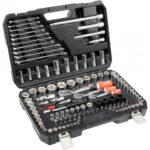 - Kartu su prailgintuvais (įskaitant lanksčius), universalia jungtimi, šešiakampiais raktais, T formos rankena ir antgalių laikikliu.