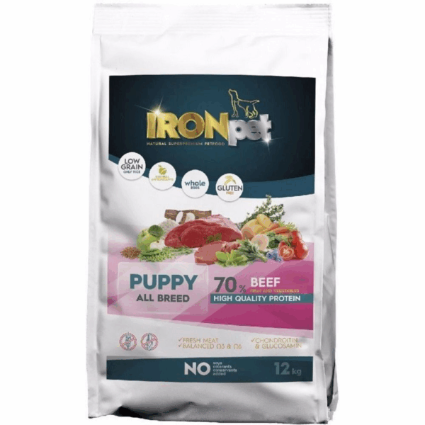 IRONpet BEEF Puppy All Breed vieno baltymo pašaras šunims iki 1 metų. – 12 kg