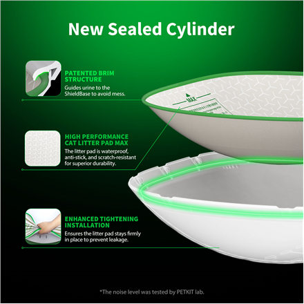 The improved ShieldBase cylinder has been designed to ensure maximum leak-proofness of the litter box. This means it effectively prevents leaks – don’t worry about the mess! Tests conducted in PetKit’s laboratory have shown that the device can handle up to 2 liters of liquid. Pura MAX 2 PREMIUM also guarantees complete safety thanks to 11 built-in sensors that detect the presence of the cat. In addition, the entrance to the litter box remains open at all times, even during cleaning – so your pet can safely leave it at any time.