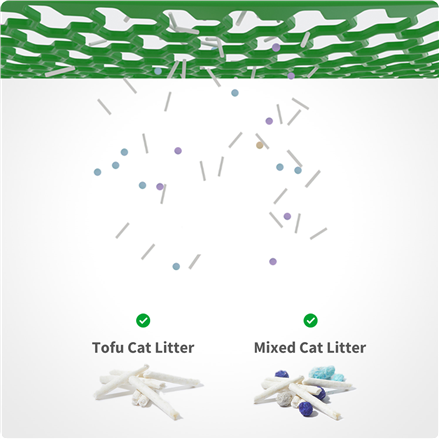 Thanks to the included interchangeable strainers, the litter box is compatible with most types of clumping litter – including bentonite, clay, tofu and mixed litter. Choose the standard strainer for larger granules or the honeycomb version for finer particles.