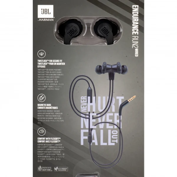 JBL Endurance Run 2 vandeniui atsparios laidinės ausinės – juodos spalvos