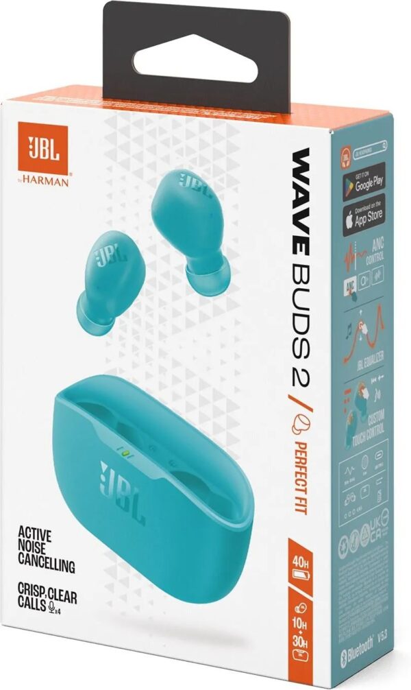 - Pakuotės turinys: JBL Wave Buds 2 ausinės, USB C tipo įkrovimo laidas, 3 dydžių ausinių antgaliai, įkrovimo dėklas, garantijos kortelė / įspėjimas (W/!), greito paleidimo vadovas / saugos kortelė (S/i)