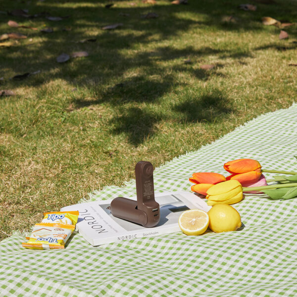 Jisulife Handheld Fan Life8 Plus nešiojamas USB ventiliatorius with Power Bank Function 4500mAh and Flashlight – rudos spalvos