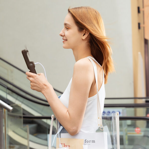 Stylish design and handy size – the device will fit in a purse, backpack or hand luggage pocket.