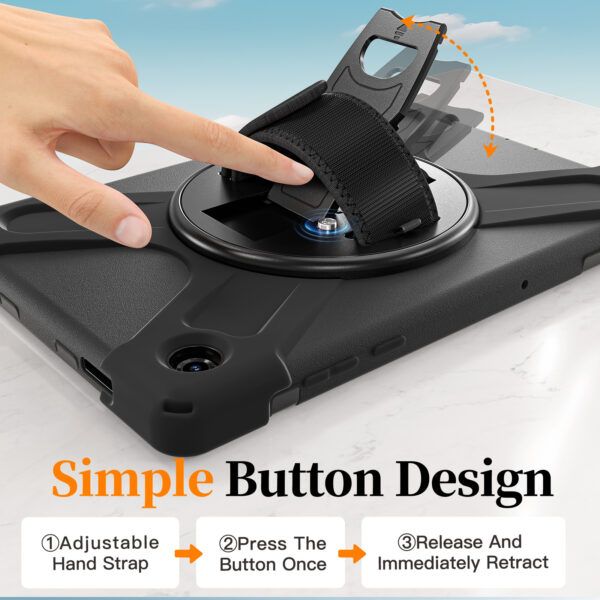 JM Rugged Case Grip, skirtas Samsung Galaxy Tab A11+, su dirželiu, juodas
