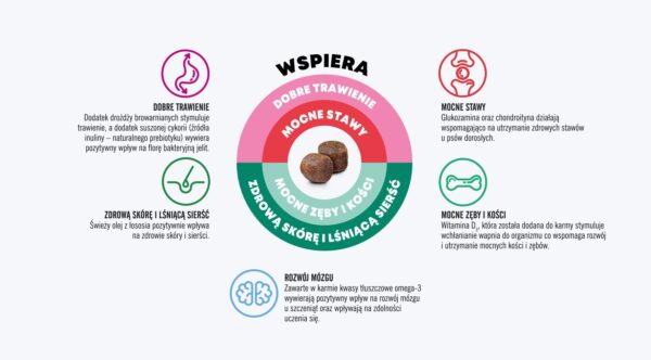 Papildomos funkcijos : Be vištienos, Be glitimo, Augimo laikotarpis, Bendra sveikatos būklė, Plaukai ir oda,