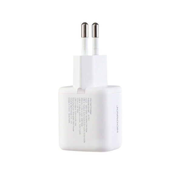 The Joyroom JR-TG7 charger is a compact solution for everyday charging of smartphones and other devices, combining high power of 33W with the ability to power two devices simultaneously. With USB-C and USB-A ports and an included USB-C to Lightning cable, it provides convenient use right out of the box. Support for popular fast charging standards and intelligent temperature management ensure stable and safe operation. This solution combines efficiency, safety, and convenience for everyday use.