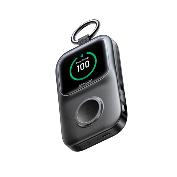 The Joyroom JR-W19 is a compact power bank designed for conveniently charging smartwatches and mobile devices. A built-in magnetic surface allows for wireless charging at up to 5W. Additional USB-C and Lightning cables enhance functionality and eliminate the need for wires. A clear digital display allows you to monitor your power level in real time. The compact design with a handle makes it easy to carry. This solution organizes charging and increases portability.