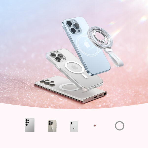 - Compatibility: MagSafe smartphones with magnetic cases; other devices with the included metal ring