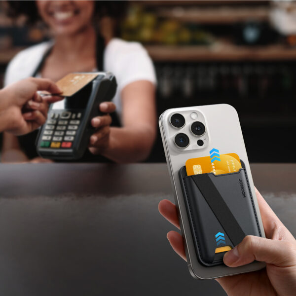 The Joyroom JR-ZS432 magnetic wallet is an elegant and practical accessory for MagSafe-compatible smartphones. Thanks to the use of 20 super-strong N55 magnets, it ensures a stable attachment to the phone, even with sudden movements or shocks. The slim and lightweight design holds up to three cards while maintaining an ultra-thin profile. It features an ergonomic strap that serves as a comfortable grip during video calls or browsing content. A special slide-out system allows for quick and easy access to cards. The JR-ZS432 combines functionality, modern design, and the convenience of everyday use.
