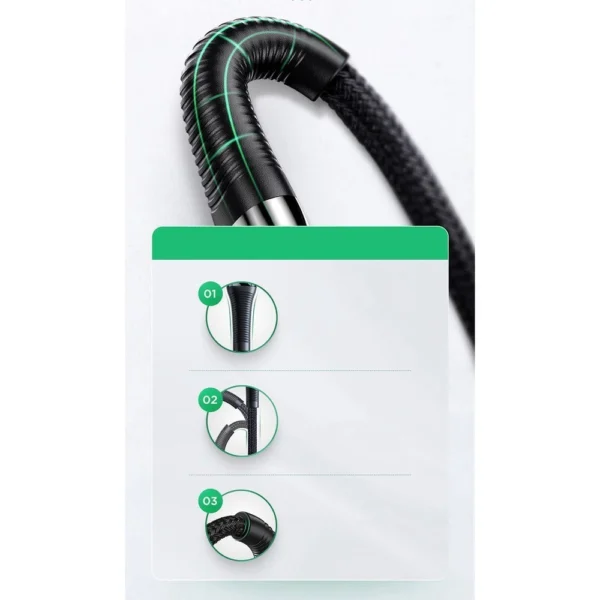 Both inside and out, Joroom has used reliable materials. The braided wrap is strong and flexible, which allows for any bending without cracking or breaking. Inside, there is an aluminum casing, and in it, tinned wires forming the core.