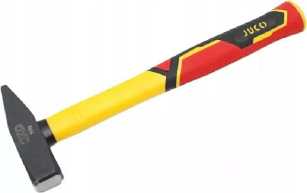 ŠALTKALVIŠKAS PLAKTUKAS STIKLO PLUOŠTO KOTU 300G – metalinė dalis kalta štampuojant iš C55 plieno, galai grūdinti indukciniu būdu iki 48-54HRC kietumo, šlifuoti, poliruoti ir nudažyti juodai. Kotas iš stiklo pluošto, patogi rankena padengta patvaria guma. Gamintojas – JUCO