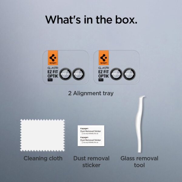 „Spigen“ objektyvų dangteliai su revoliuciniu „EZ FIt“ tvirtinimo metodu – jei jus gąsdino šis grūdinto stiklo aspektas, jūsų problemos ką tik išspręstos! Dangtelius apsaugo idealiai išpjautas tvirtinimo rėmelis, leidžiantis idealiai išdėstyti objektyvus. Gamintojas supaprastino montavimo procesą taip, kad jis būtų visiškai intuityvus kiekvienam vartotojui.