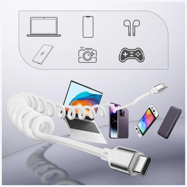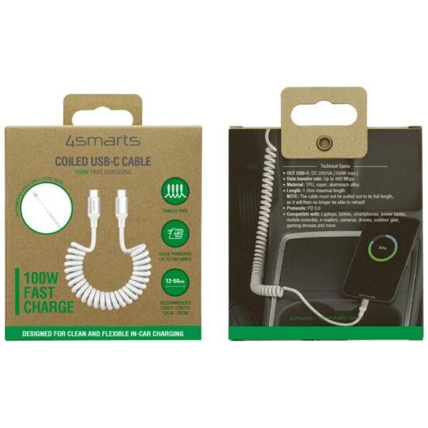 Kabelis 4smarts spiralinis USB-C į USB-C 100W baltos spalvos