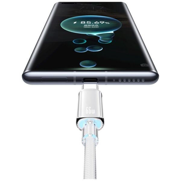Kabel został wykonany z trwałego materiału w oplocie, który zwiększa odporność na uszkodzenia mechaniczne i przetarcia. Aluminiowe końcówki dodają mu elegancji i zapewniają dodatkową ochronę przed zużyciem. Dodatkowym atutem jest podświetlenie, które ułatwia korzystanie z kabla w ciemności. To idealne rozwiązanie dla osób, które szukają niezawodnego i wygodnego przewodu na długie lata.