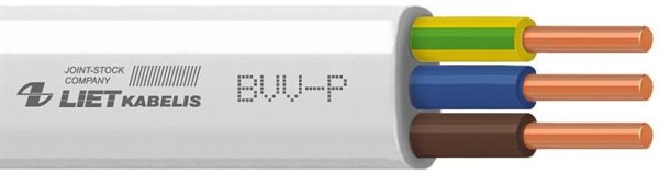 Prekės ženklas- Lietkabelis. Modelis- BVV-P. Laidininko medžiaga- Vario monolitas. Vardinė įtampa- 500 V. Gyslos skerspjūvis- 2.5 mm². Kiekis pakuotėje- 10 m. Izoliacinio sluoksnio medžiaga- Polivinilchloridas (PVC). Spalva- Balta. Apvalkalo medžiaga- Polivinilchloridas (PVC). Kabelio forma- Plokščias (juosta). Gyslų skaičius- 3. Degumo klasė- Eca. Papildoma informacija- Nominali įtampa: 500 V. Degimo klasė: Eca.