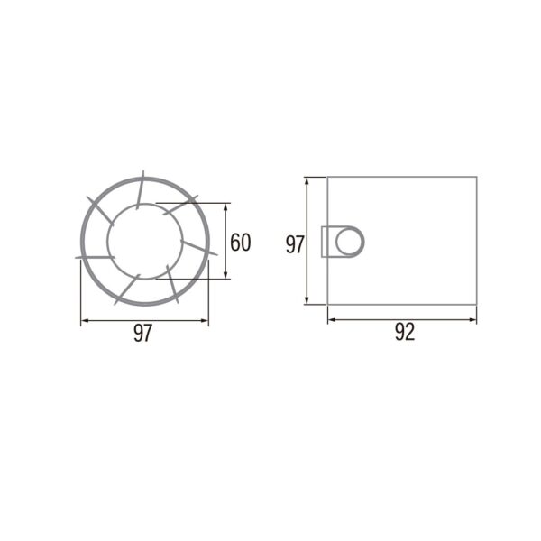 - Matmenys (P x A x G): 97 x 97 x 92 mm