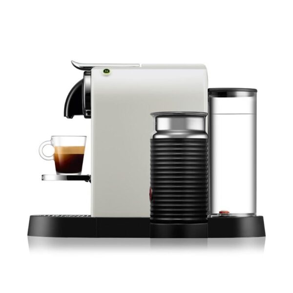 Prekės ženklas- Nespresso. Modelis- EN 267.WAE. Plotis- 21.8 cm. Aukštis- 27.7 cm. Svoris- 4 kg. Spalva- Balta. Korpuso medžiaga- Plastikas. Galia- 1710 W. Maksimalus darbinis slėgis- 19 Bar. Kavos aparato tipas- Kapsulinis. Kavos kapsulių tipas- Nespresso. Kavos tipas- Kavos kapsulės. Gėrimų rūšys- Kava, Espresso, Caffè latte, Cappuccino. Vandens talpa- 1 l. Garų antgalis- Ne. Automatinis plovimas- Ne. Automatinis nukalkinimas- Ne. Apsauga nuo vandens išsiliejimo- Taip. Ekranas- Ne. Privaloma garantija- 24 mėn. Papildoma informacija- Automatiškai išsijungia po 9 minučių. Į komplektą eina kartu su Aeroccino pieno plakikliu, kad galėtumėte paruošti mėgstamus kapučino ir latte gėrimus..