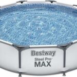 Prekės ženklas- Bestway. Artikulas- 56416. Baseino tipas- Karkasinis. Skersmuo- 366 cm. Aukštis- 76 cm. Spalva- Pilka sp.. Medžiaga- Polivinilchloridas (PVC). Baseino komplektacija- Baseinas, Vandens filtravimo pompa. Tūris- 6473 l. Įspėjimas!- Nepalikite vaikų be priežiūros. Vaikai gali paskęsti netgi tada, kai yra mažai vandens. Saugoti nuo ugnies. Vengti sąlyčio su aštriais daiktais. Nepalikite vandens baseine, kai juo nesinaudojate. Nestatykite baseino ant asfalto, betono ar kitų kietų dangų. Pasilikite pakuotę, kol naudosite gaminį.. Privaloma garantija- 24 mėn.