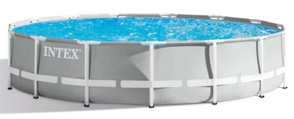 Prekės ženklas- Intex. Artikulas- 26724NP. Ilgis- 457 cm. Baseino tipas- Karkasinis. Skersmuo- 457 cm. Plotis- 457 cm. Aukštis- 107 cm. Spalva- Pilka. Medžiaga- Metalas, Polivinilchloridas (PVC), Poliesteris. Baseino komplektacija- Baseinas, Paklotas, Uždangalas, Vandens filtravimo pompa, Įprastos kopėtėlės. Pompa orui pūsti- Ne. Tūris- 14614 l. Įspėjimas!- Ant pakuotės esančią informaciją rekomenduojama išsaugoti., Nepalikite vaikų be priežiūros. Vaikai gali paskęsti netgi tada, kai yra mažai vandens. Saugoti nuo ugnies. Vengti sąlyčio su aštriais daiktais. Nepalikite vandens baseine, kai juo nesinaudojate. Nestatykite baseino ant asfalto, betono ar kitų kietų dangų. Pasilikite pakuotę, kol naudosite gaminį.. Privaloma garantija- 24 mėn. Papildoma informacija- Medžiaga: polivinilchloridas (PVC), poliesteris, metalas. Baseino komplektas: baseinas, kilimas, danga, vandens filtravimo siurblys, įprastos kopėčios.