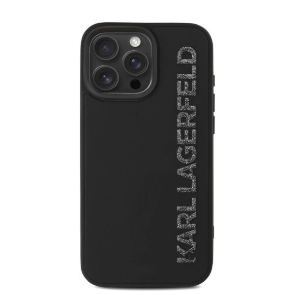 Karl Lagerfeld 3D Rubber Glitter Logo Apple iPhone 15 Pro Max dėklas telefonui juodos spalvos