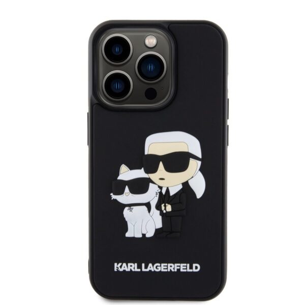 Karl Lagerfeld 3D Rubber Karl and Choupette dėklas telefonui Apple iPhone 15 Pro juodos spalvos