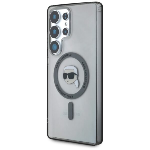 Karl Lagerfeld Button Karl Head Printed Logo MagSafe Samsung Galaxy S25 Ultra dėklas telefonui juodos spalvos