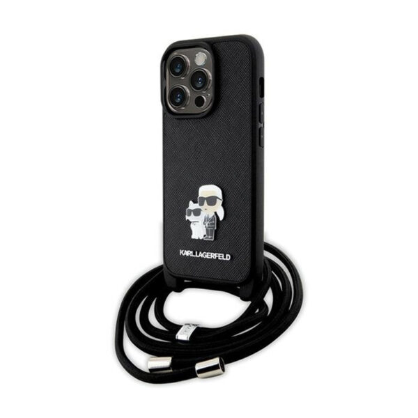 Karl Lagerfeld Crossbody Saffiano Metal Pin Karl & Choupette – Apple iPhone 14 Pro Case Black