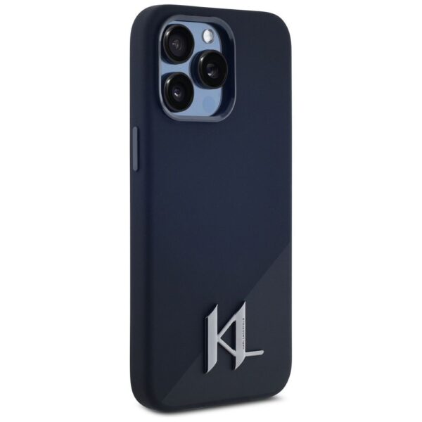 KARL LAGERFELD dėklas skirtas Apple iPhone 15 Pro compatible with MagSafe KLHMP15LSCMKMPCK (Silicone Initial Metal Logo) juodos spalvos