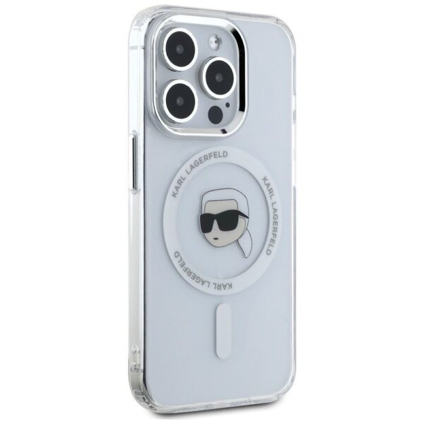 KARL LAGERFELD dėklas skirtas Apple iPhone 15 Pro Max compatible with MagSafe KLHMP15XHLSKIH (IML Metal K Head) baltos spalvos