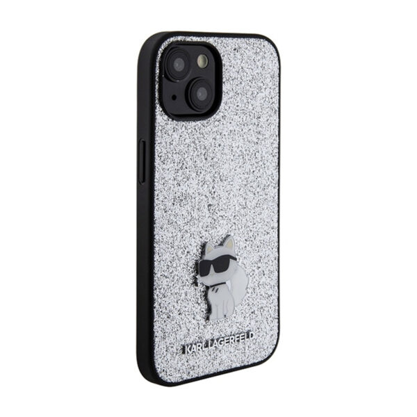 Karl Lagerfeld Fixed Glitter Choupette Logo Metal Pin – dėklas skirtas Apple iPhone 15 / 14 / 13 Silver