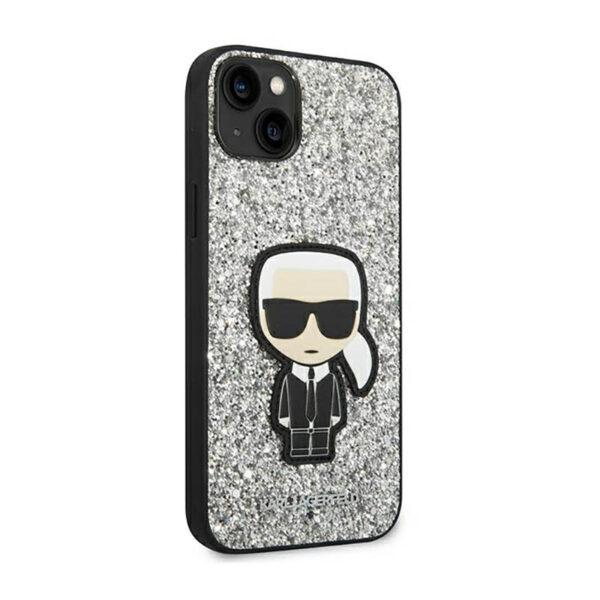 Karl Lagerfeld Glitter Flakes Ikonik – dėklas skirtas Apple iPhone 14 Silver